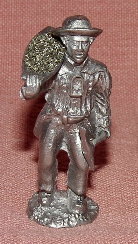 Zinn "Häuer mit Erzschale", 5,5cm hoch, mit Mineralien
