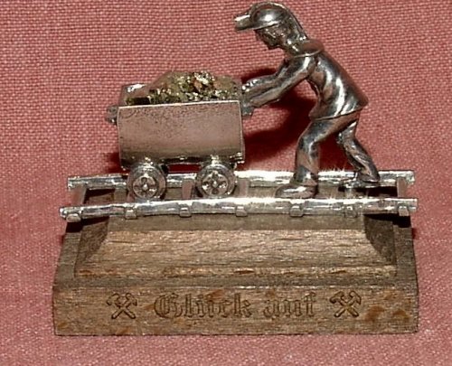 Zinn "Bergmann mit Hunt und Schiene", 3,5 cm hoch - ohne Sockel