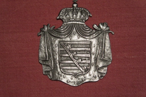 Sächsiches Schachthutemblem, aus Zinn, 7,3 cm hoch
