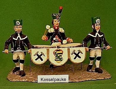 Zinnfiguren bergmännische Musikkapelle "Kesselpauke" mehrteilig, handbemalt