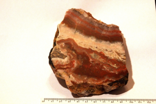 Korallenachat aus Halsbach bei Freiberg; ca. 9 cm breit und 11 cm hoch. Anschliff