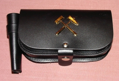 „Tzscherper - Tasche“ schwarz, Leder, mit goldfarbenen Schlägel & Eisen, Halterungen für Koppel