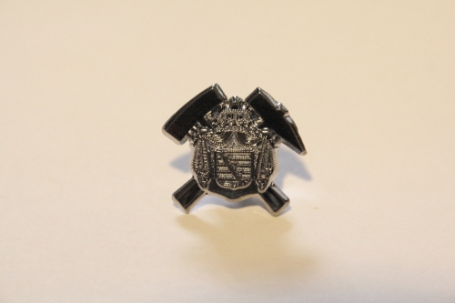 Pin Schlägel&Eisen mit aufgeprägten Sachsenwappen, ca. 2 cm silberfarben