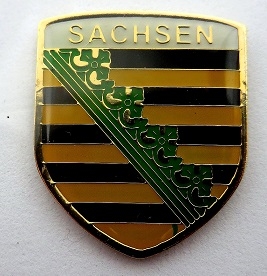 Sachsenwappen aus Metall. Breite 2,5 cm,. Länge 2,5 cm. An der Rückeite befindet sich ein Magnet, so kann der